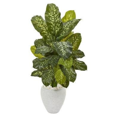 48" Dieffenbachia Artificial Plant in White Planter (Real Touch)