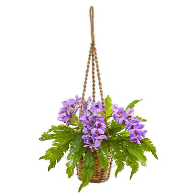 29" Phalaenopsis Orchid and Fern Artificial Plant in Hanging Basket