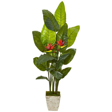 73" Bird Of Paradise Artificial Plant In Country White Planter (Real Touch)