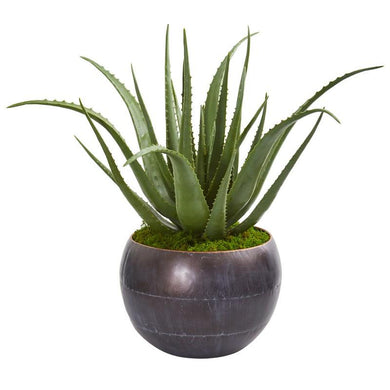 22" Aloe Artificial Plant in Vintage Metal Pail