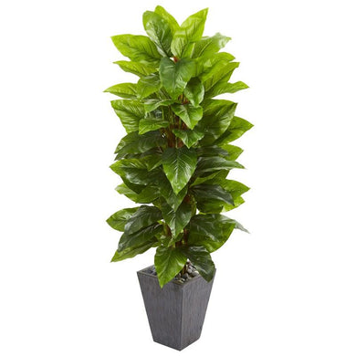 5' Large Leaf Philodendron Artificial Plant in Slate Planter (Real Touch)