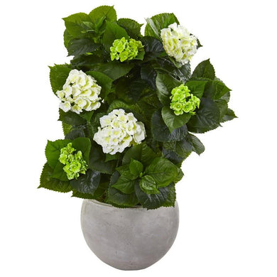 30" Hydrangea Artificial Plant in Sand Stone Bowl