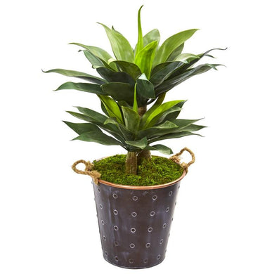 34" Double Agave Succulent Artificial Plant in Metal Planter