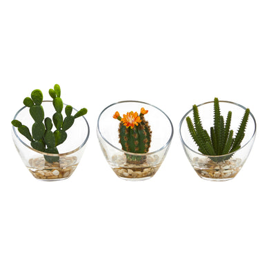 7" Mixed Succulent Artificial Plant in Glass Vase (Set of 3)