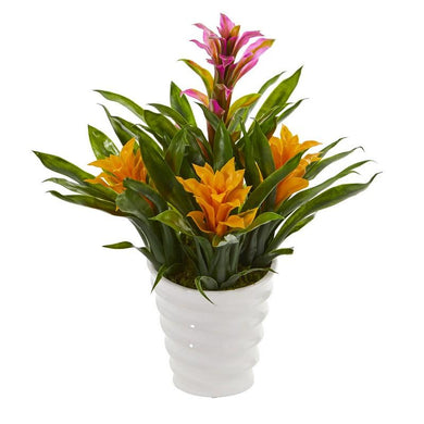 4' Cymbidium Orchid Artificial Plant in White Planter