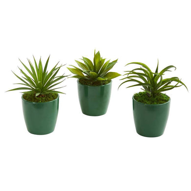 Mini Agaves Artificial Plant in Green Planter (Set of 3)