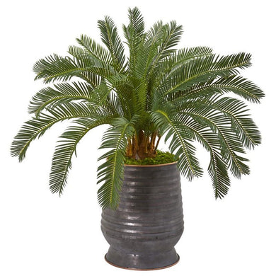 31" Cycas Artificial Plant in Ribbed Metal Planter