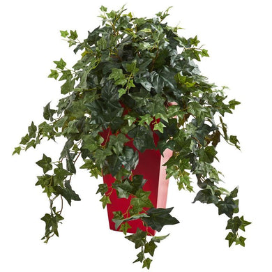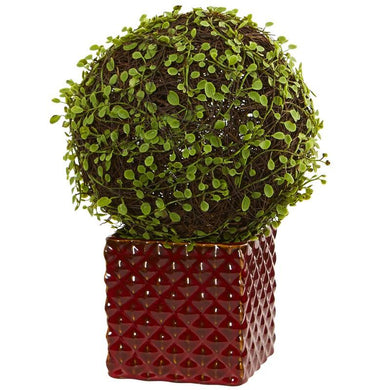 Mohlenbechia Ball Artificial Plant in Red Ceramic Cube