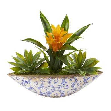 Bromeliad and Agave Artificial Plant in Floral Planter