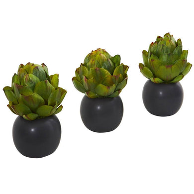 7" Artichoke Artificial Plant in Black Vase (Set of 3)