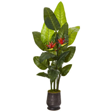 76" Bird of Paradise Artificial Plant in Ribbed Metal Planter (Real Touch)