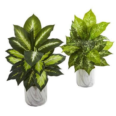 Dieffenbachia Artificial Plant in Marble Finish Planter (Set of 2)