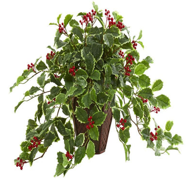 18' Variegated Holly Artificial Plant in Decorative Planter (Real Touch)