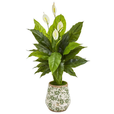 49" Spathiphyllum Artificial Plant In Decorative Planter (Real Touch)