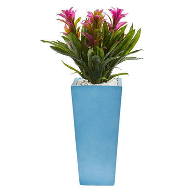 26" Triple Bromeliad Artificial Plant in Turquoise Tower Vase