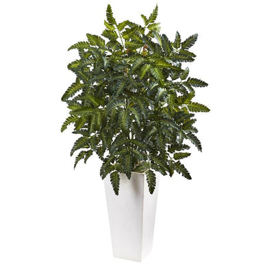 Bracken Fern with White Planter