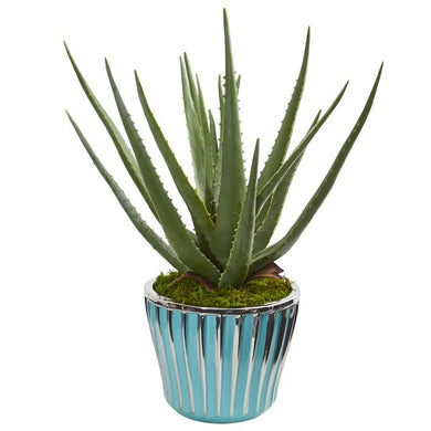 18" Aloe Artificial Plant in a Turquoise Planter
