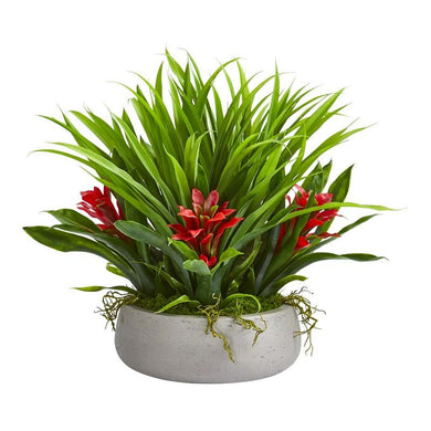 16" Bromeliad & Grass Artificial Plant in Ceramic Vase