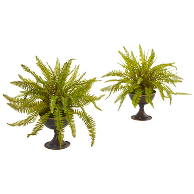 Fern Artificial Plant in Metal Chalice (Set of 2)