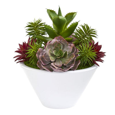 16" Succulent Garden Artificial Plant in White Bowl Vase