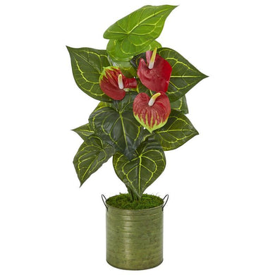 29" Anthurium Artificial Plant in Metal Planter (Real Touch)