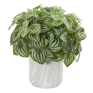 Peperomia Artificial Plant in Marble Finished Vase (Real Touch)