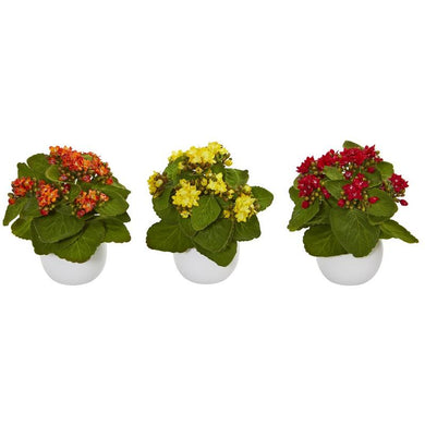 8" Kalanchoe Artificial Plant in White Vase (Set of 3)