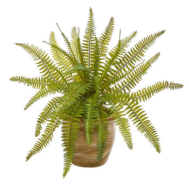 Nearly Natural Leather Fern W/Mossy Hanging Basket (Indoor/Outdoor) (Set Of 2)