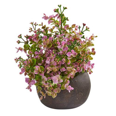 10" Eucalyptus and Sedum Artificial Plant in Stone Brown Planter
