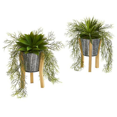 11" Agave Succulent Artificial Plant in Tin Planter with Legs (Set of 2)
