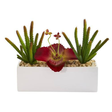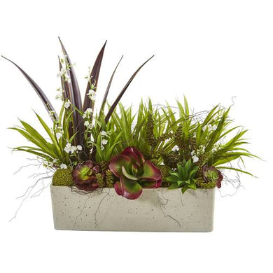 32" Mixed Succulent and Grass Garden Artificial Plant in White Planter