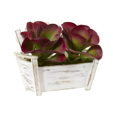 13" Succulent Artificial Plant in Wooden Bench Planter