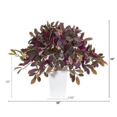 23" Fall Laurel Leaf with Berries Artificial Plant in White Planter
