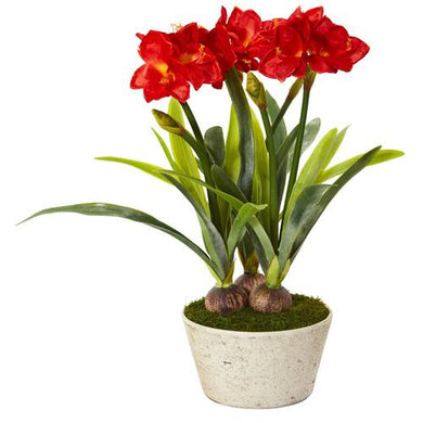 39" Amaryllis and Tulip Artificial Plant in Decorative Planter