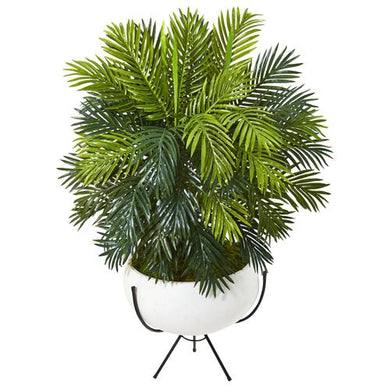 45" Areca Palm Artificial Plant in White Planter with Metal Stand