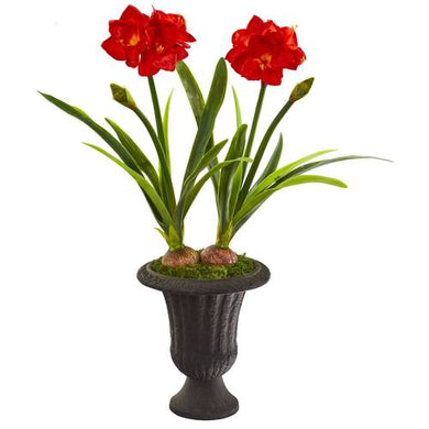 49" Double Amaryllis Artificial Plant in Charcoal Urn