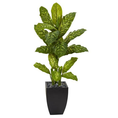 50" Dieffenbachia Artificial Plant in Black Planter (Real Touch)