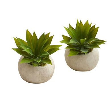 6" Mini Agave Succulent Artificial Plant in Stone Planter (Set of 2)