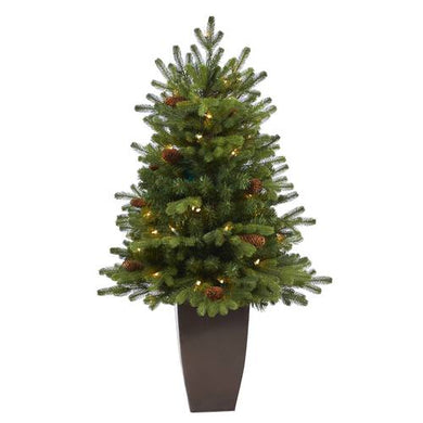 3.5'Yukon Mountain Fir Artificial Christmas Tree with 50 Clear Lights and Pine Cones in Bronze Metal Planter