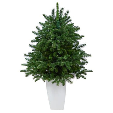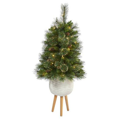 4'Washington Fir Artificial Christmas Tree with 50 Clear Lights in White Planter with Decorative Planter Stand
