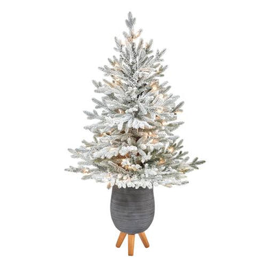 4'Flocked Fraser Fir Artificial Christmas Tree with 200 Warm White Lights and 481 Bendable Branches in Gray Planter