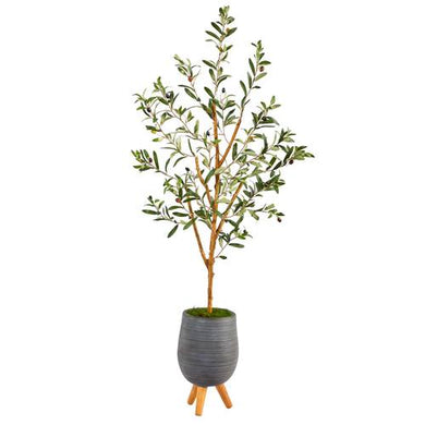 5'Olive Artificial Tree in Gray Tri-Pod Planter