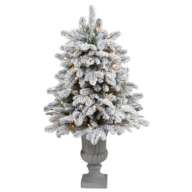 46" Flocked North Carolina Fir Artificial Christmas Tree with 150 Warm White Lights and 545 Bendable Branches in Decorative Urn