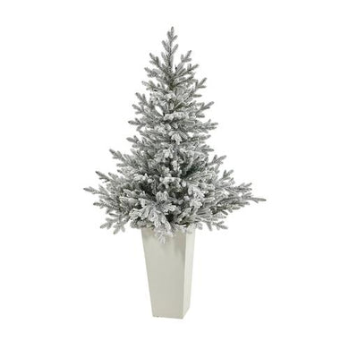 57" Flocked Fraser Fir Artificial Christmas Tree with 300 Warm White Lights and 967 Bendable Branches in Tower Planter