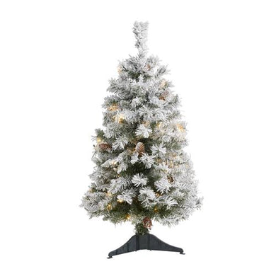 3'Flocked North Carolina Fir Artificial Christmas Tree with 150 Warm White Lights and 545 Bendable Branche