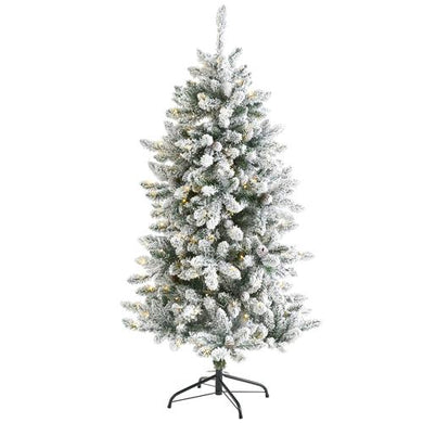 5'Flocked Livingston Fir Artificial Christmas Tree with Pine Cones and 200 Clear Warm LED Lights