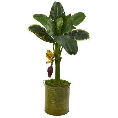 50" Travelers Palm Artificial Tree in Ribbed Metal Planter