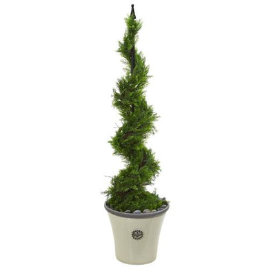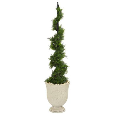 58" Cypress Artificial Spiral Topiary Tree in Decorative Urn