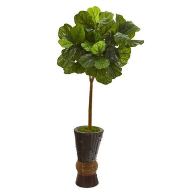 50" Fiddle Leaf Artificial Tree in Bamboo Planter (Real Touch)
