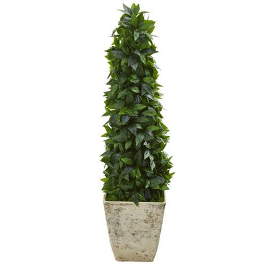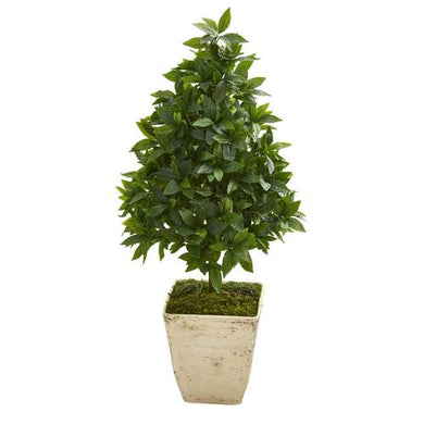 38" Sweet Bay Cone Topiary Artificial Tree in Country White Planter